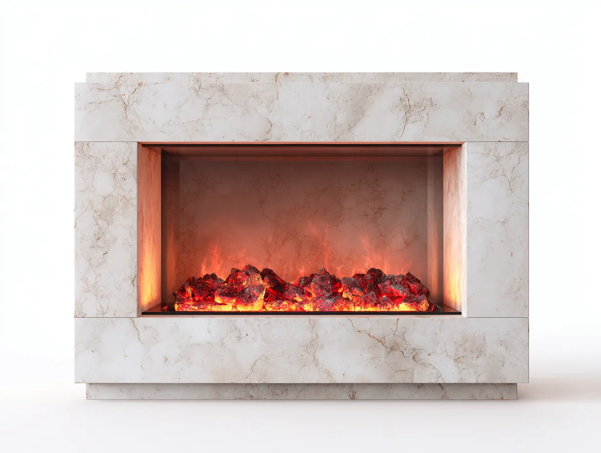 Camino - Marmo - 138x45x110 cm - Bianco crema - Stile moderno geometrico