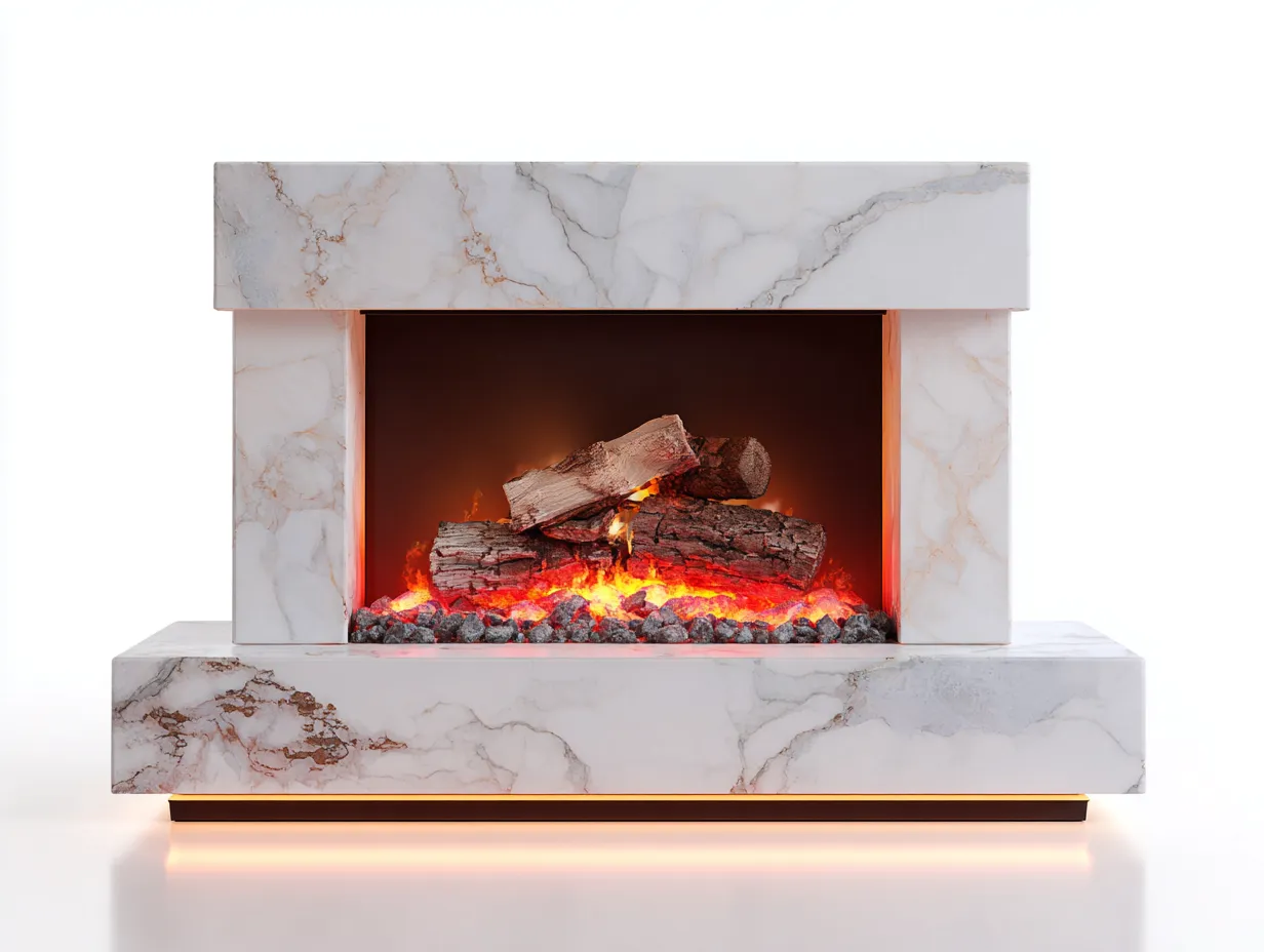 Camino - Marmo - 140x46x112 cm - Bianco venato - Stile moderno essenziale