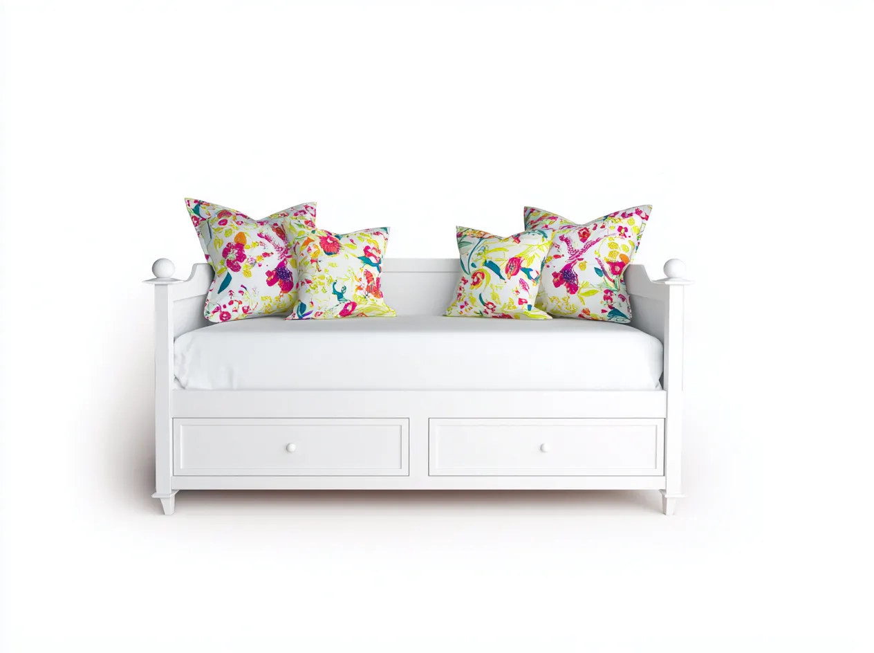 Divano letto - Tessuto-Legno - 190x90x76 cm - Multicolore-Bianco - Stile classico